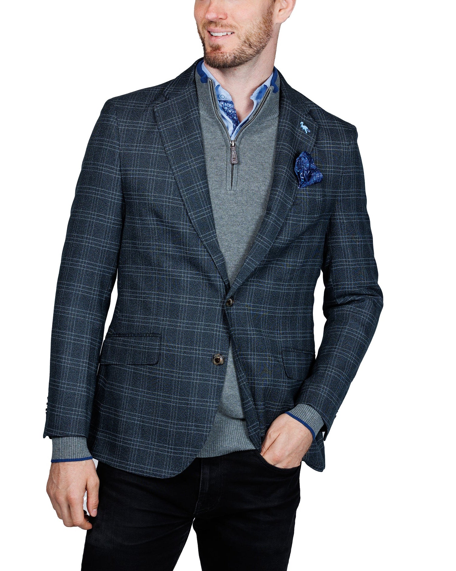 - “Built In” Pocket Square that can be displayed for a touch of elegance or easily tucked away for a more understated look TailorByrd's Signature 'Byrd' Removable