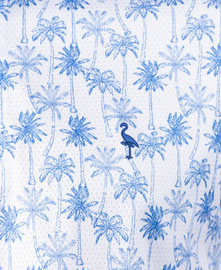 Vintage Palm Trees Printed Mesh Performance Polo