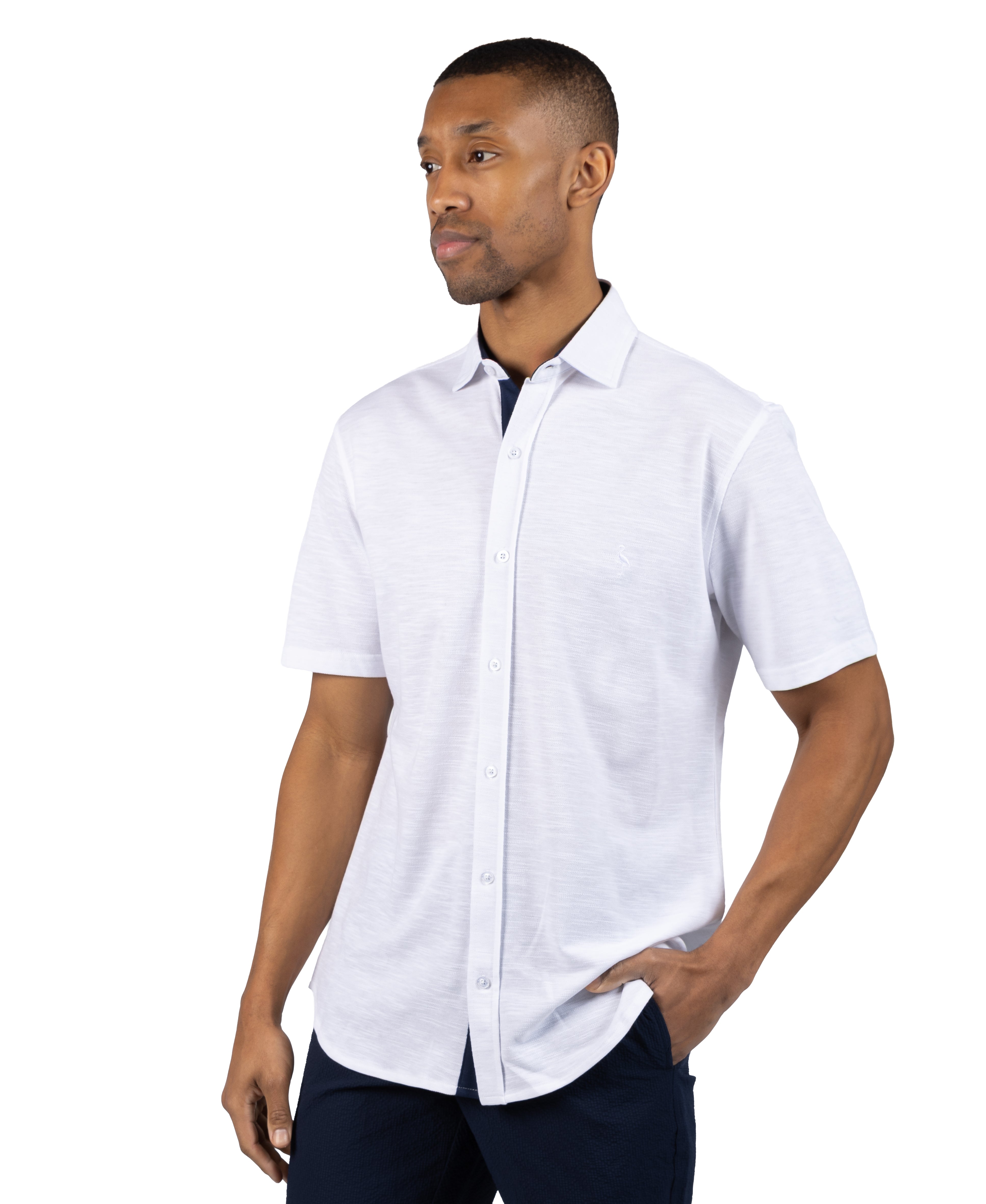 Lightweight pique comfort you can wear buttoned up or open as a top layer. Easygoing, versatile, and ready for whatever the day brings.