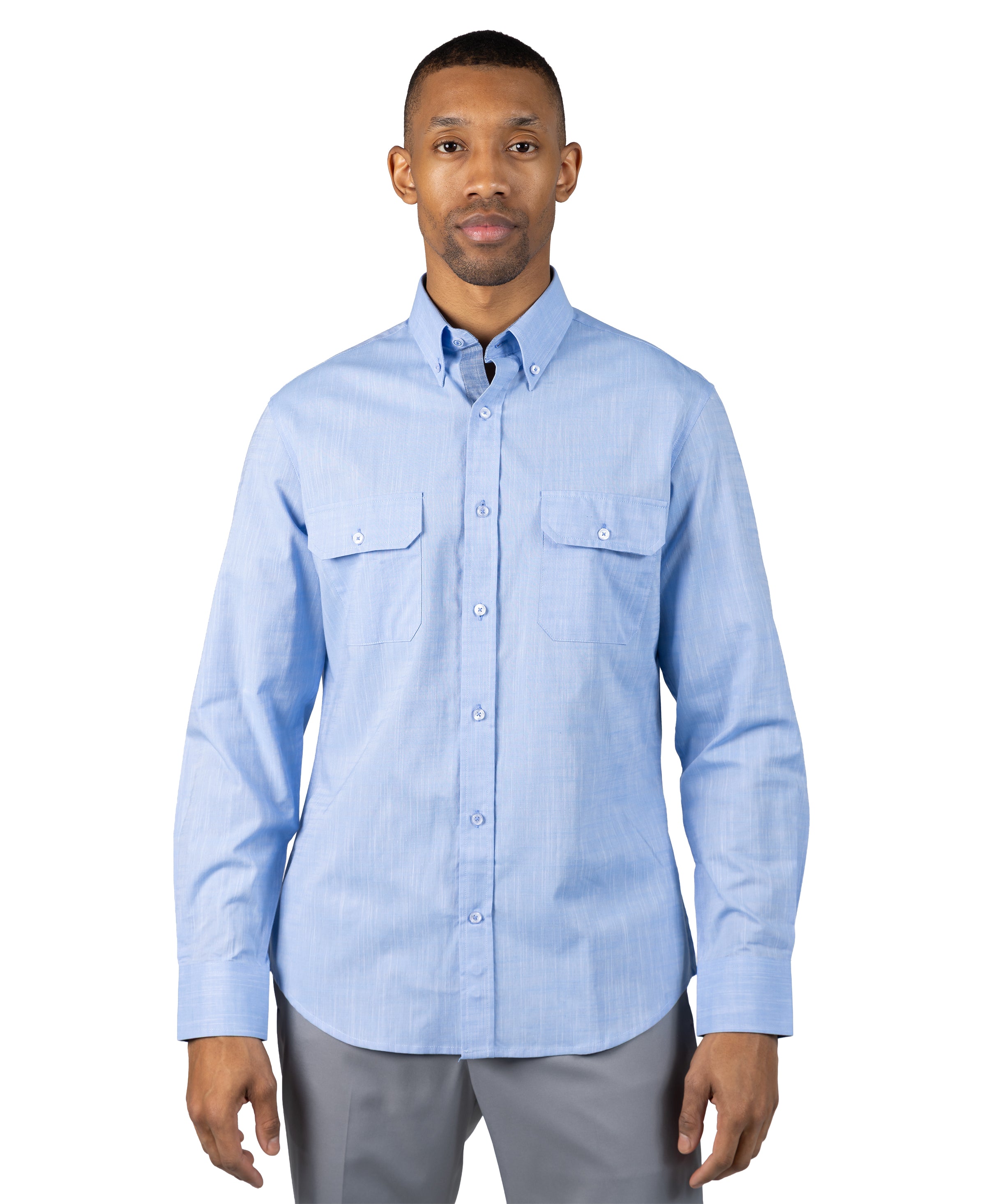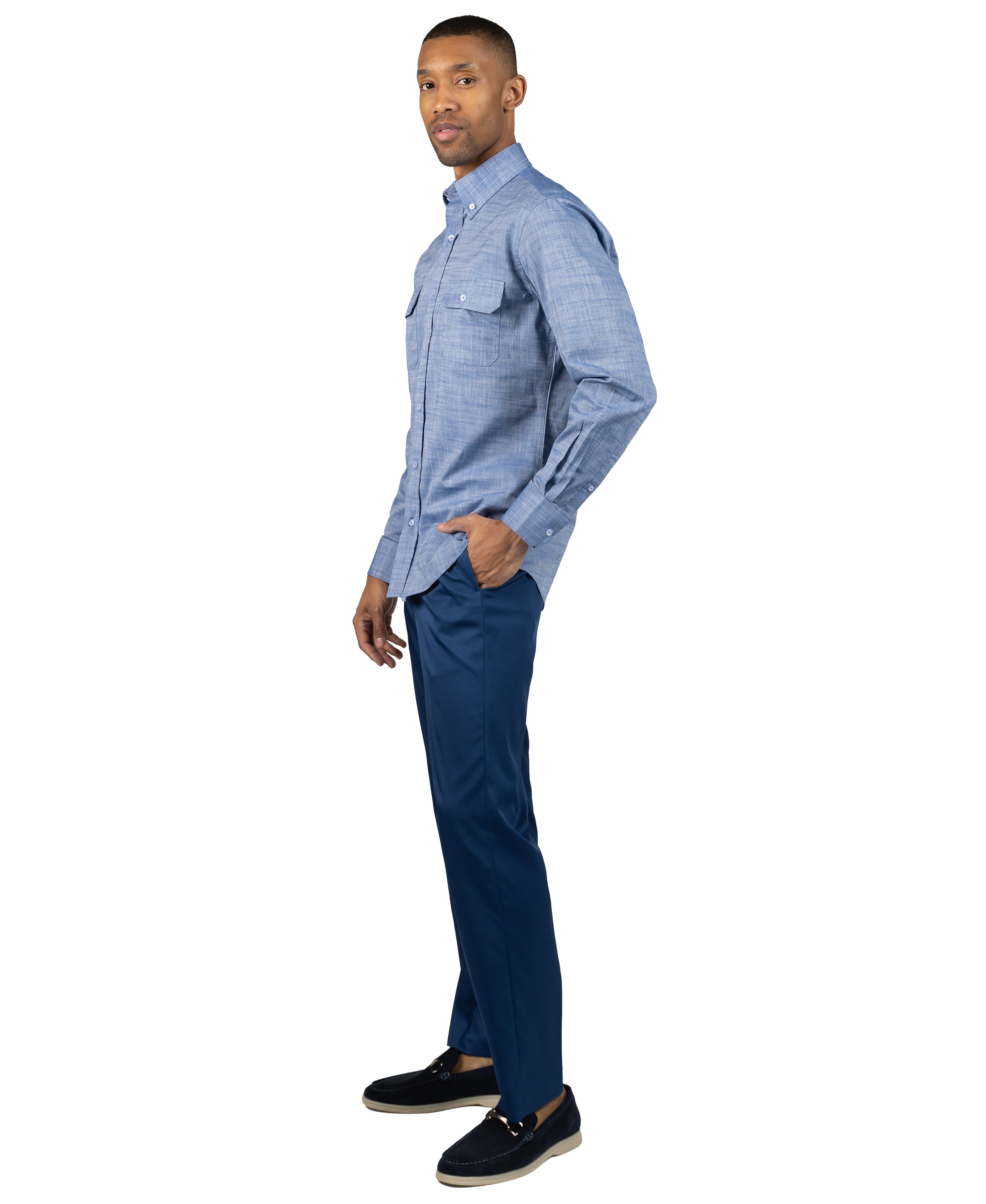 Elevated chambray shirt, two chest pockets, embroidered logo and a cotton fabric to keep you comfortable and sharp all day long.